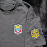 Gridiron aesthetics meet Wadadli pride. A premium heavyweight oversized tee featuring the rising sun reimagined as a pro-team logo.