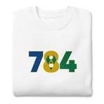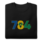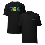 Show your Vincentian pride with our iconic Dial Code design. This premium t-shirt features the St Vincent area code +784, intricately embroidered and filled with the island's vibrant flag colours (Blue, Yellow, and Green).