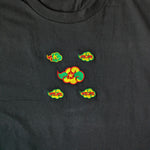 Every t-shirt is custom embroidered to order. On this page, you can choose your size, colour, and most importantly, your embroidery size and placement. Please add final details in the "Personalisation" or "Order special instructions" box at checkout. Popular options include: