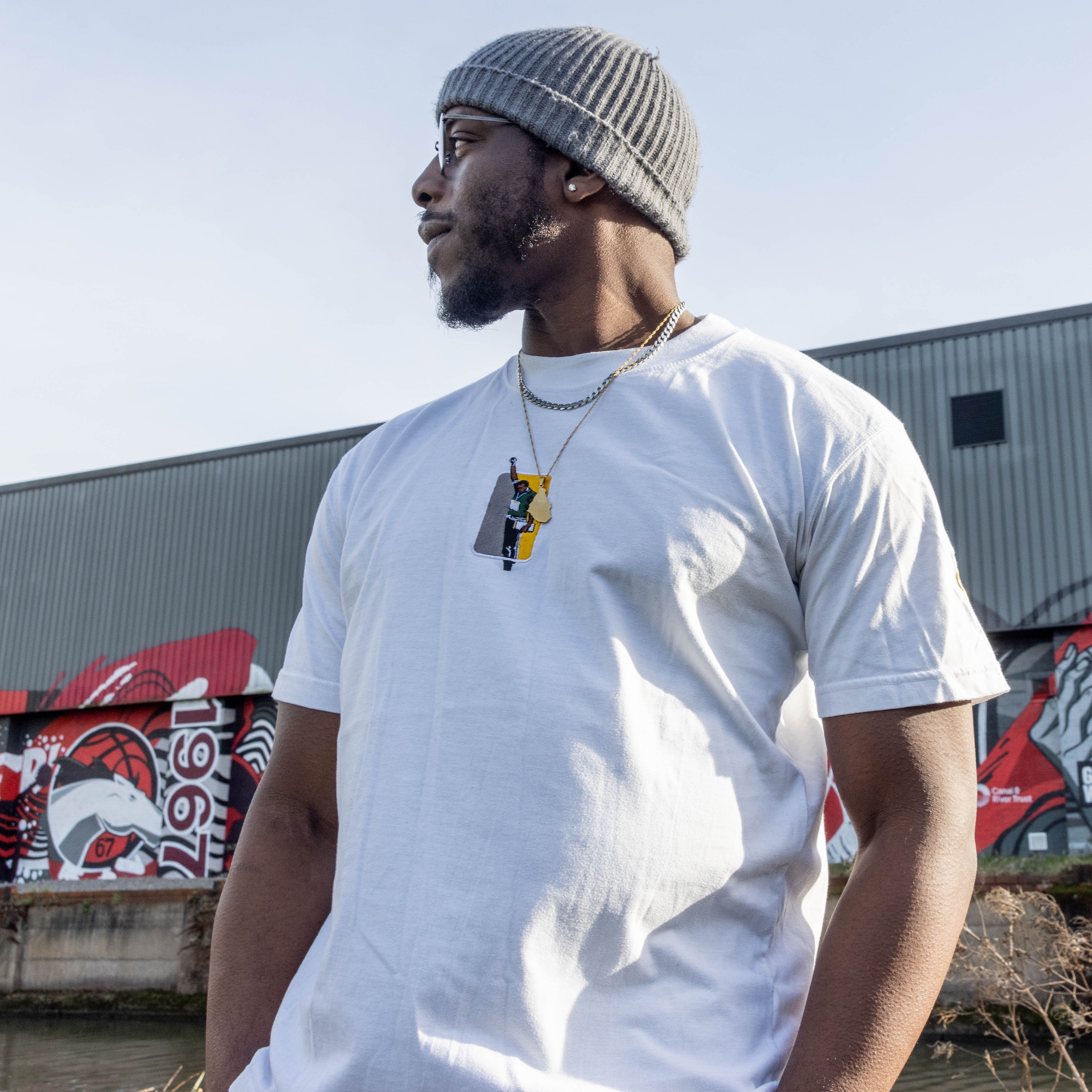 This collection merges the forward-thinking NBA logo with the iconic image of Tommie Smith for a one-of-a-kind design. It's created to raise awareness, generate conversation, and inspire positive change.