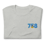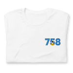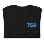 St. Lucia Dial Code (+758) Embroidered T-Shirt - Premium Caribbean Apparel